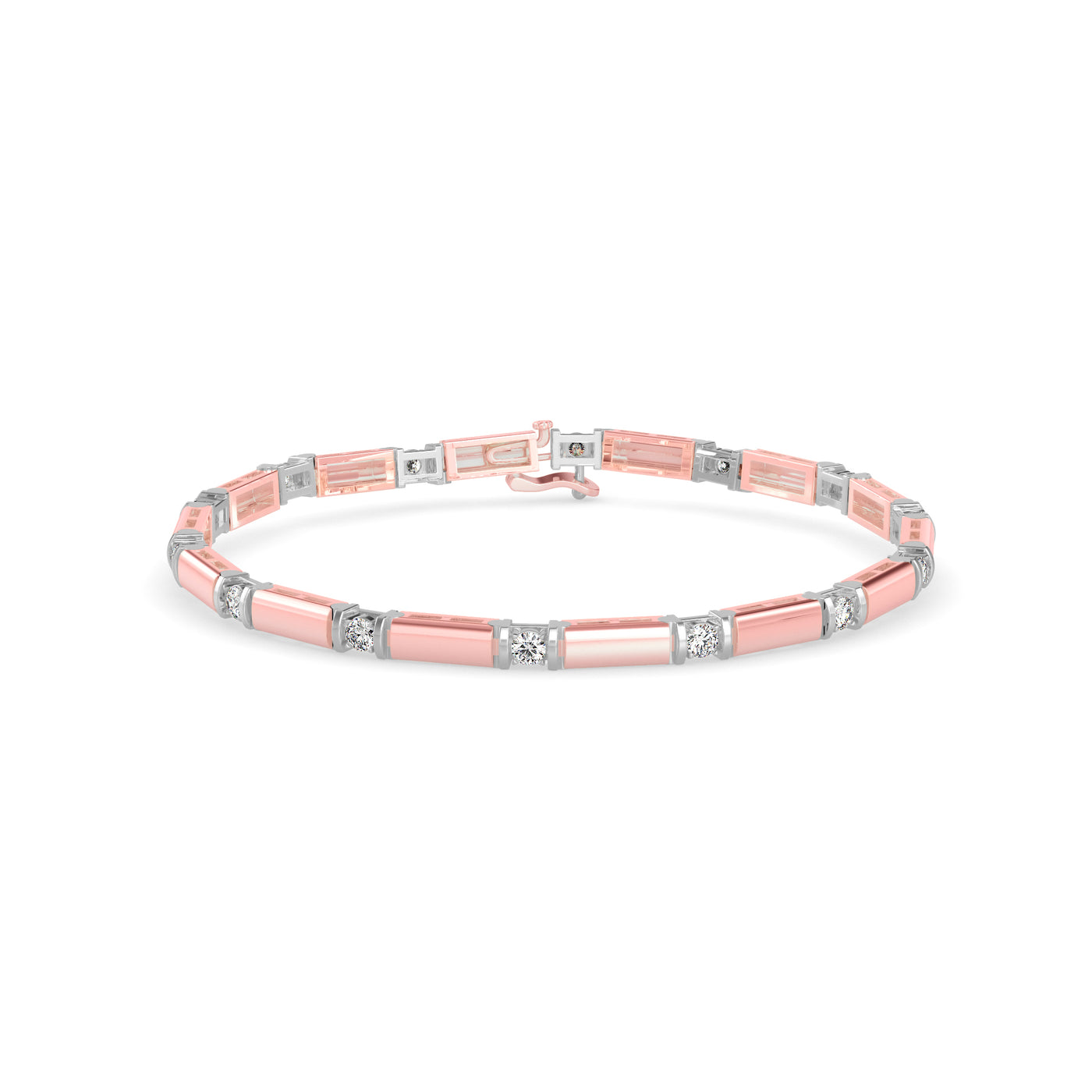 Polished rose bars intersect with sparkling diamond links, creating a sleek, minimalistic bracelet full of light and balance.